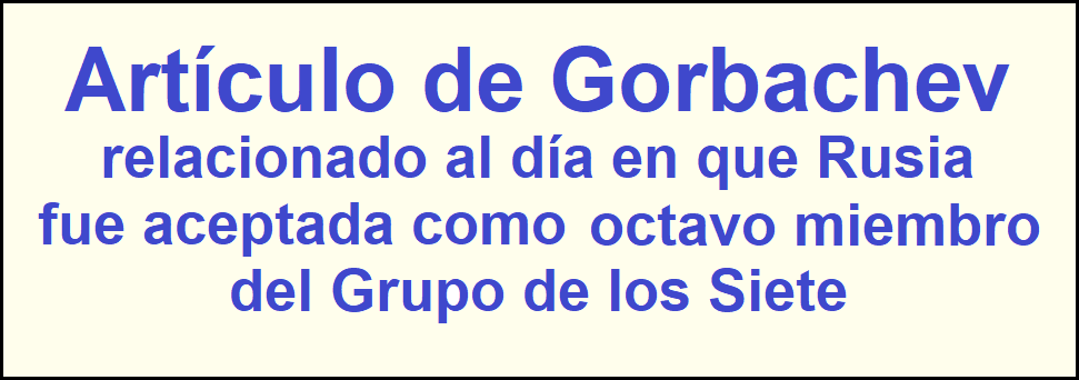 Hay quienes en Washington insisten en que el Grupo de los Siete se ha transformado en el Grupo de los Ocho, o, haciendo eco a la terminología del Presidente de Estados Unidos, Bill Clinton, aluden a “La Cumbre de los Ocho”.