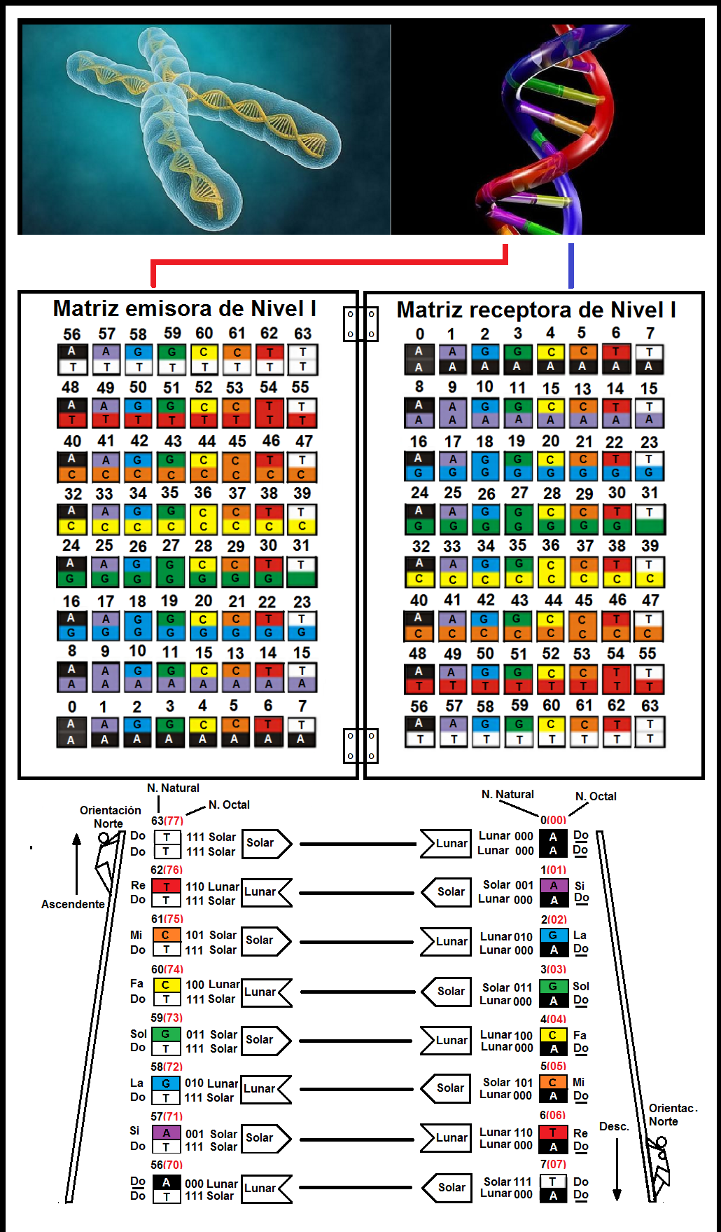 para caracteres de 8 bases químicas, correspondiente a la doble hélice del ADN